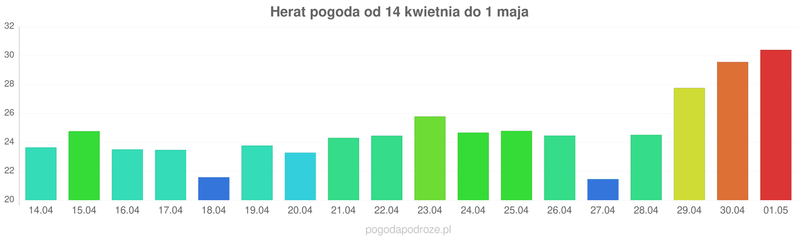 Według prognozy długoterminowej za tydzień w Herat temperatura wzrośnie i będzie trochę cieplej, w ciągu dnia termometry bedą notowały około 26 stopni.