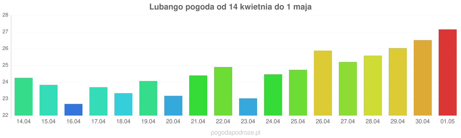 Według prognozy długoterminowej za tydzień w Lubango temperatura wzrośnie i będzie trochę cieplej, w ciągu dnia termometry bedą notowały około 23 stopnie.