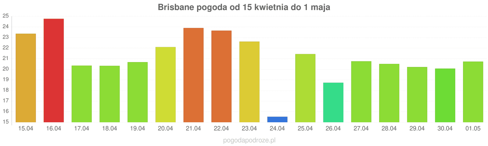 Według prognozy długoterminowej za tydzień w Brisbane temperatura będzie spadać, w ciągu dnia można będzie obserwować temperatury około 23 stopnie.