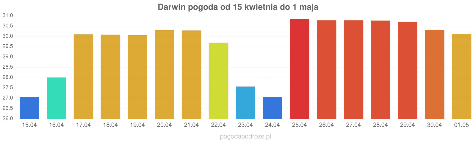 Jeśli damy wiarę prognozom z odstępem czasu 7 dni to czeka nas ochłodzenie w Darwin w przyszłym tygodniu. Temperatura w ciągu dnia powinna spaść do 28 stopni.