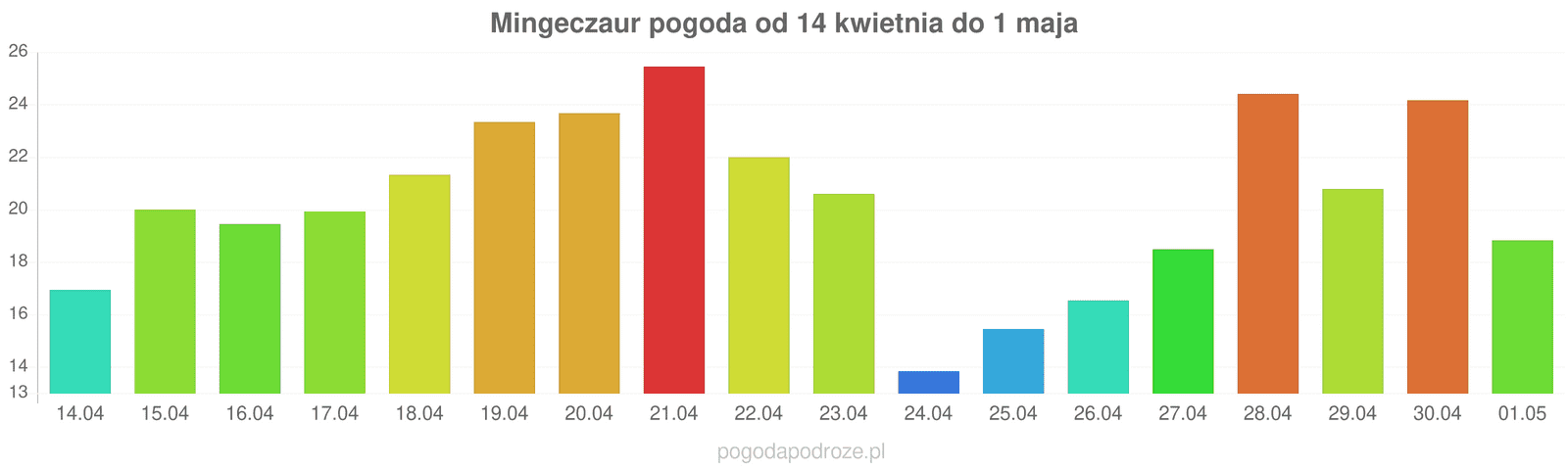 Według prognozy długoterminowej za tydzień w Mingeczaur temperatura wzrośnie i będzie trochę cieplej, w ciągu dnia termometry bedą notowały około 21 stopni.