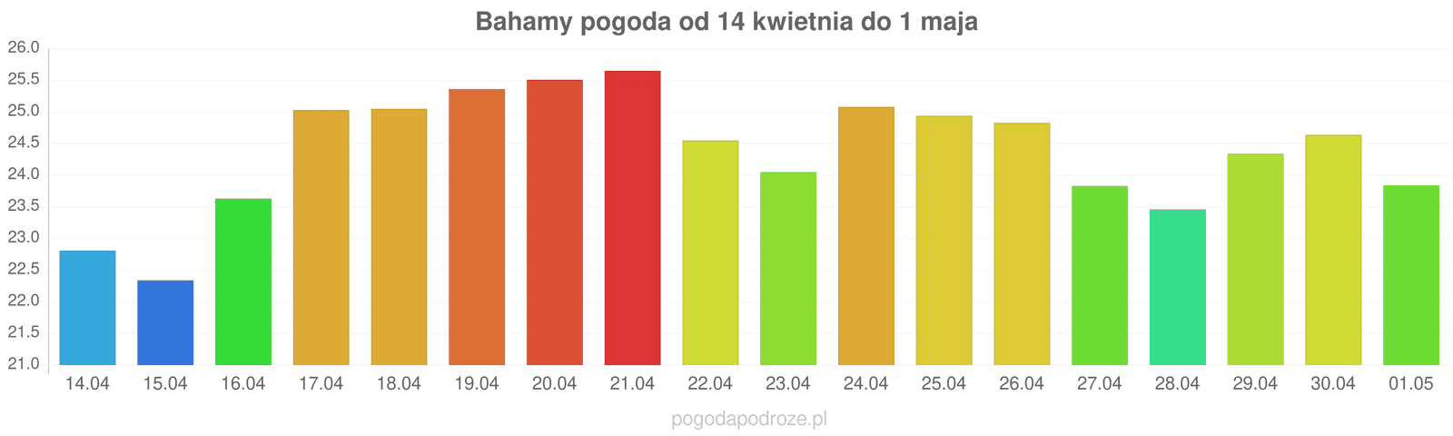 Jeśli chodzi o jutro, to temperatura będzie wyższa na Bahamach i wyniesie w ciągu dnia około 25 stopni.