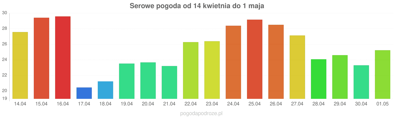 Jeśli damy wiarę prognozom z odstępem czasu 7 dni to czeka nas ochłodzenie w Serowe w przyszłym tygodniu. Temperatura w ciągu dnia powinna spaść do 26 stopni.