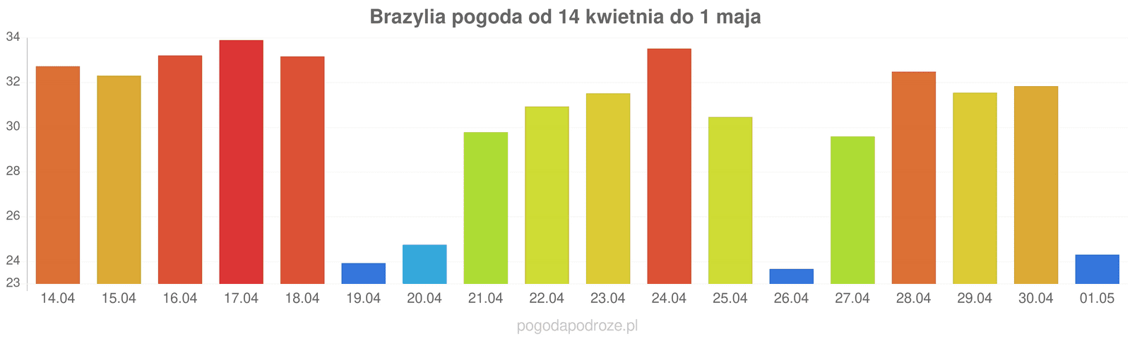 Z kolei jutro będzie jeszcze cieplej niż dziś w Brazylii. Termometry pokażą w ciągu dnia 34 stopnie.