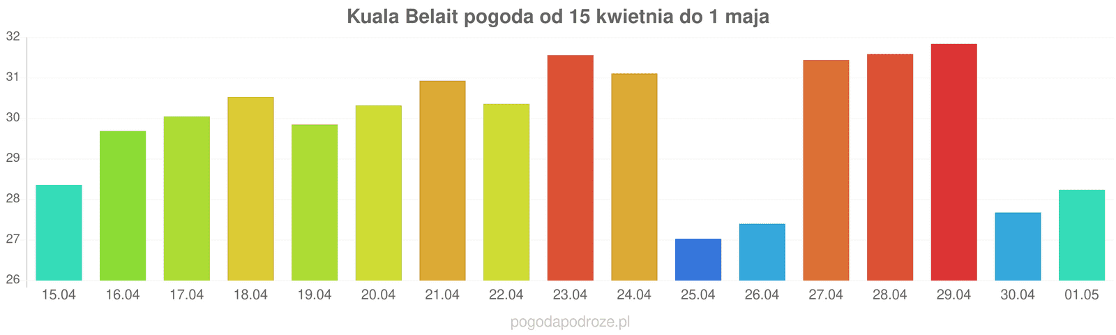 Z kolei jutro będzie jeszcze cieplej niż dziś w Kuala Belait. Termometry pokażą w ciągu dnia 30 stopni.