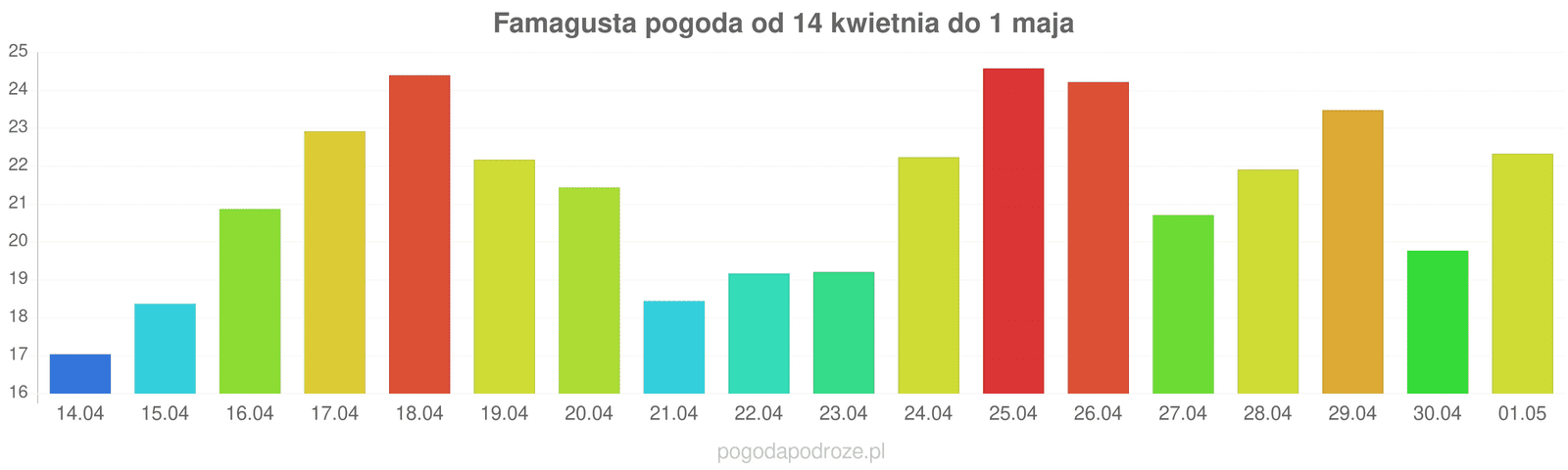Według prognozy długoterminowej za tydzień w Famagusta temperatura będzie spadać, w ciągu dnia można będzie obserwować temperatury około 19 stopni.