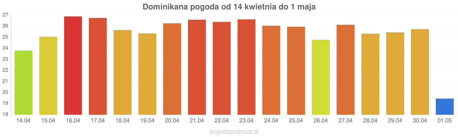 W przypadku dnia jutrzejszego można mówić o spadku temperatury na Dominikanie. Słupek termometry spadnie i wyniesie w ciągu dnia 27 stopni.