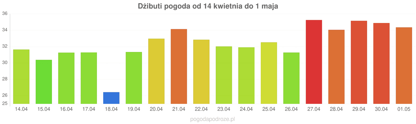 Z kolei jutro będzie jeszcze cieplej niż dziś w Dżibuti. Termometry pokażą w ciągu dnia 31 stopni.