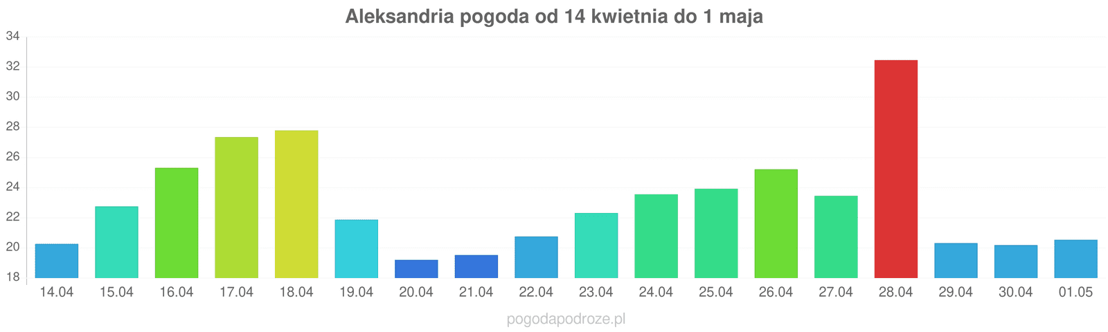 Jeśli damy wiarę prognozom z odstępem czasu 7 dni to czeka nas ochłodzenie w Aleksandrii w przyszłym tygodniu. Temperatura w ciągu dnia powinna spaść do 22 stopni.