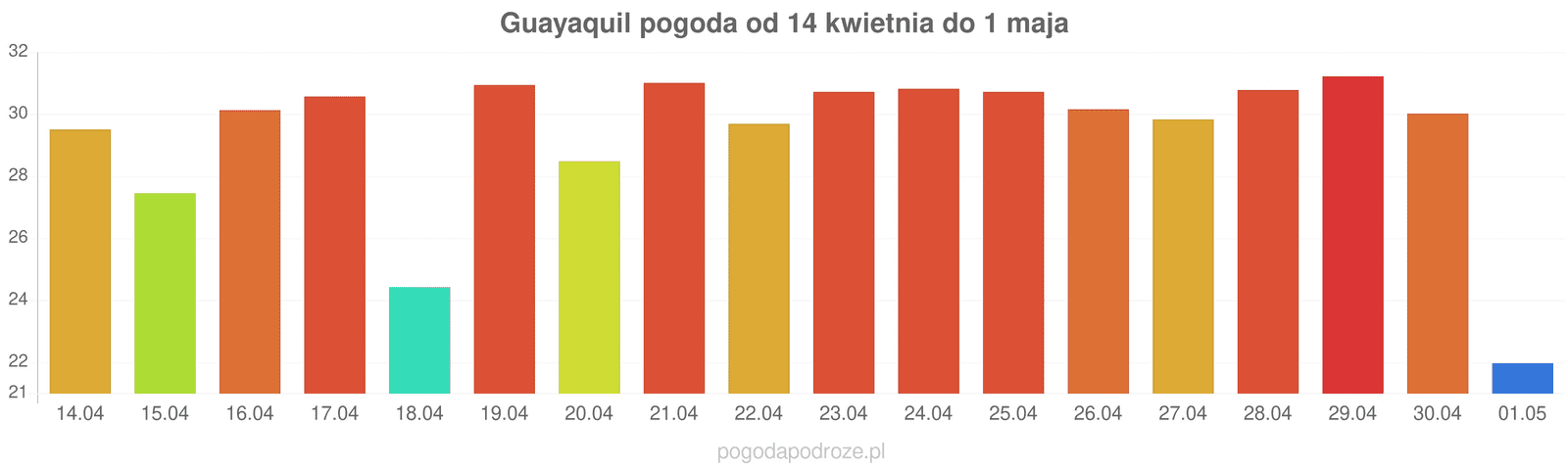 Z kolei jutro będzie jeszcze cieplej niż dziś w Guayaquil. Termometry pokażą w ciągu dnia 31 stopni.