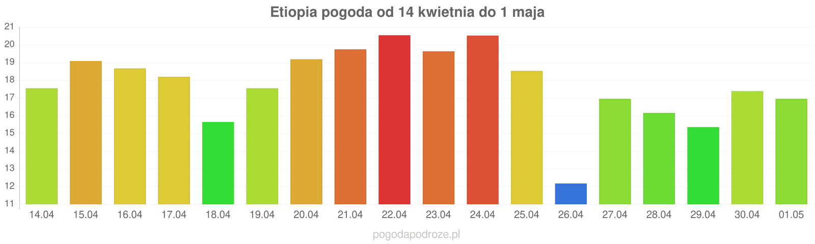 Natomiast jutro temperatura będzie niższa w Etiopii i wyniesie w ciągu dnia około 18 stopni.