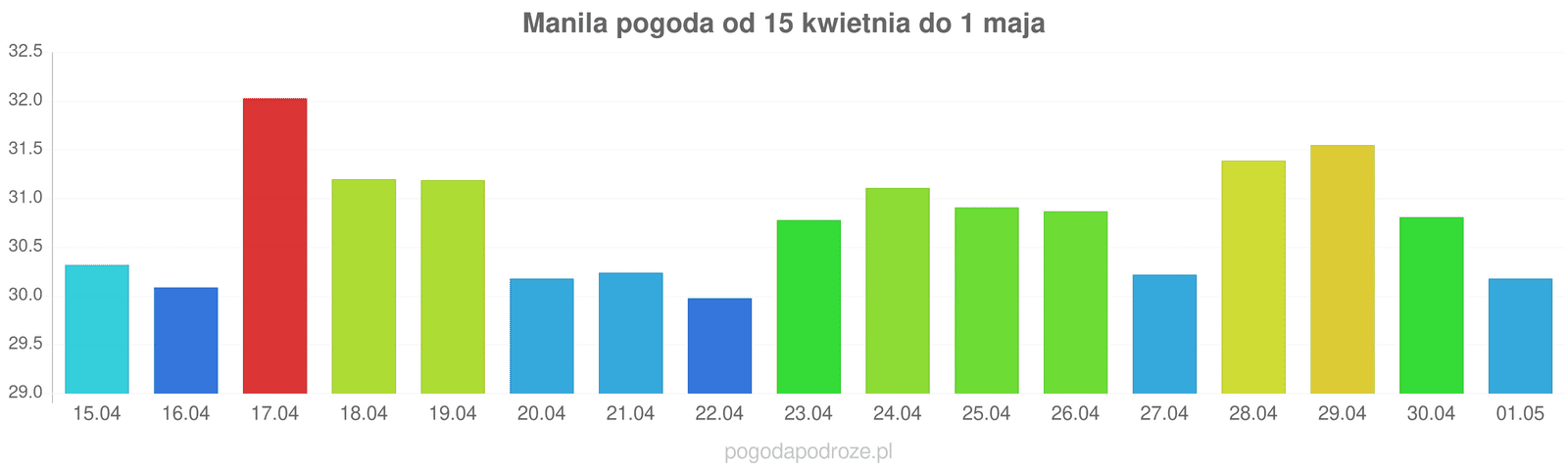Jeśli wierzyć prognozom z odstępem czasu 7 dni to czeka nas dużo ciepła w Manila w przyszłym tygodniu. Temperatura w ciągu dnia osiągnie 31 stopni.