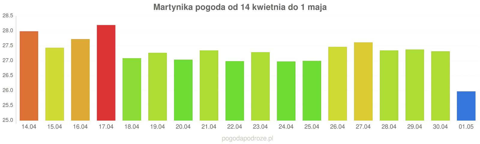 Z kolei jutro będzie jeszcze cieplej niż dziś w Martynice. Termometry pokażą w ciągu dnia 28 stopni.
