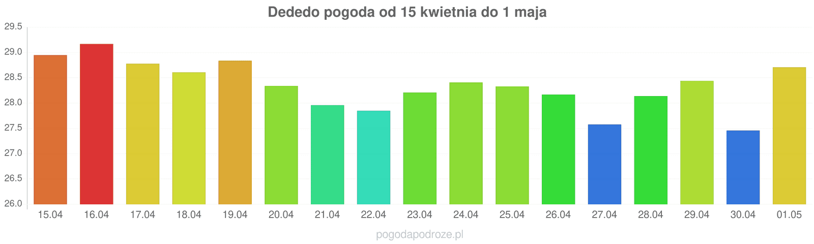 Jeśli damy wiarę prognozom z odstępem czasu 7 dni to czeka nas ochłodzenie w Dededo w przyszłym tygodniu. Temperatura w ciągu dnia powinna spaść do 28 stopni.