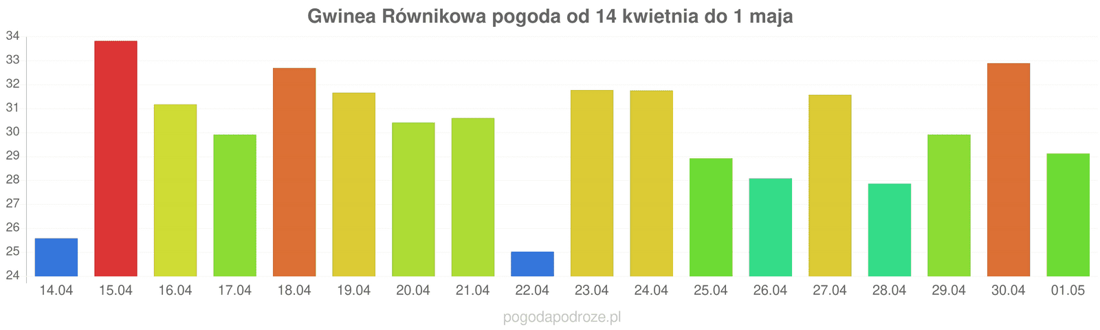 Jeśli wierzyć prognozom z odstępem czasu 7 dni to czeka nas dużo ciepła w Gwinea Równikowa w przyszłym tygodniu. Temperatura w ciągu dnia osiągnie 32 stopnie.