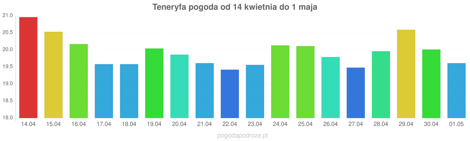 Według prognozy długoterminowej za tydzień w Teneryfie temperatura będzie spadać, w ciągu dnia można będzie obserwować temperatury około 20 stopni.