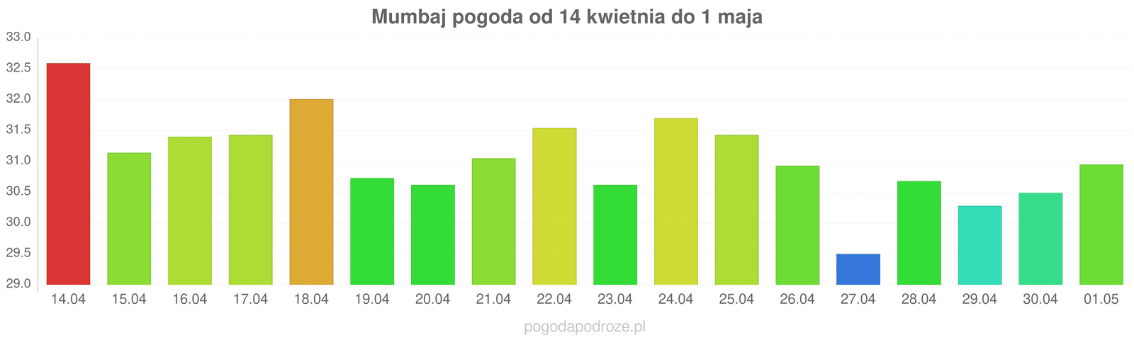 Jeśli damy wiarę prognozom z odstępem czasu 7 dni to czeka nas ochłodzenie w Mumbaj w przyszłym tygodniu. Temperatura w ciągu dnia powinna spaść do 31 stopni.