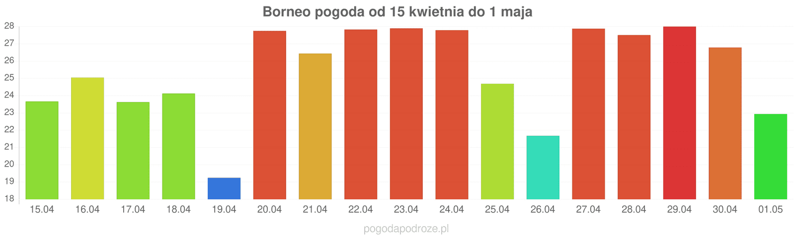 Jeśli wierzyć prognozom z odstępem czasu 7 dni to czeka nas dużo ciepła w Borneo w przyszłym tygodniu. Temperatura w ciągu dnia osiągnie 28 stopni.