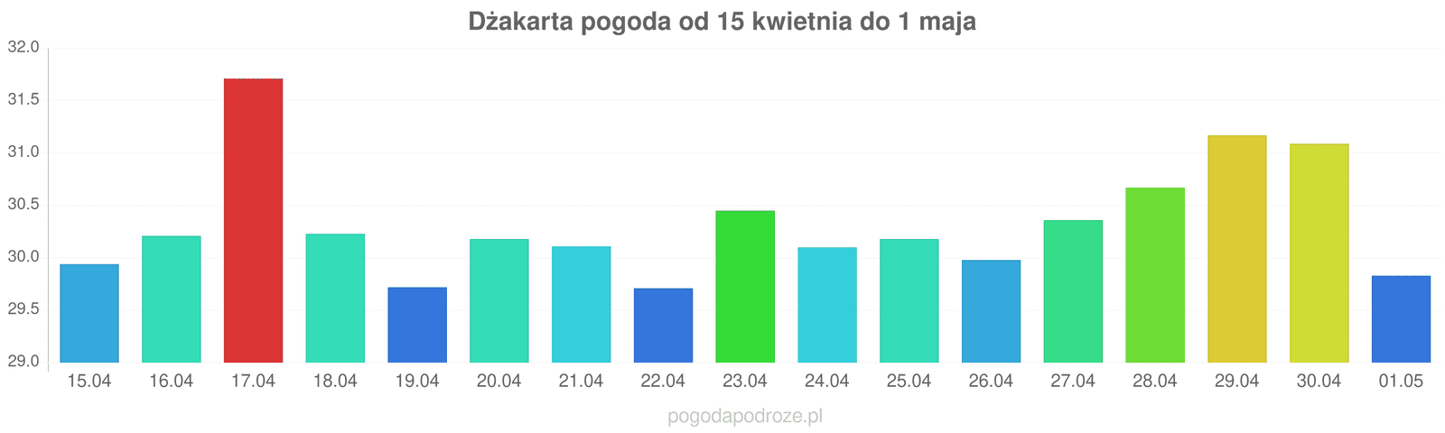 Z kolei jutro będzie jeszcze cieplej niż dziś w Dżakarcie. Termometry pokażą w ciągu dnia 32 stopnie.