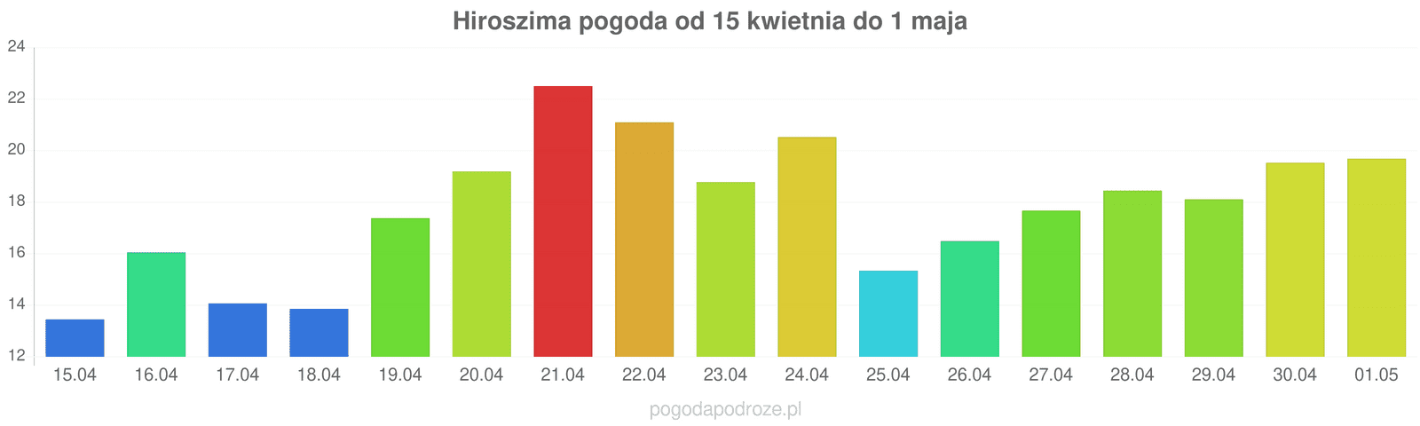 Natomiast jutro temperatura będzie niższa w Hiroszima i wyniesie w ciągu dnia około 14 stopni.