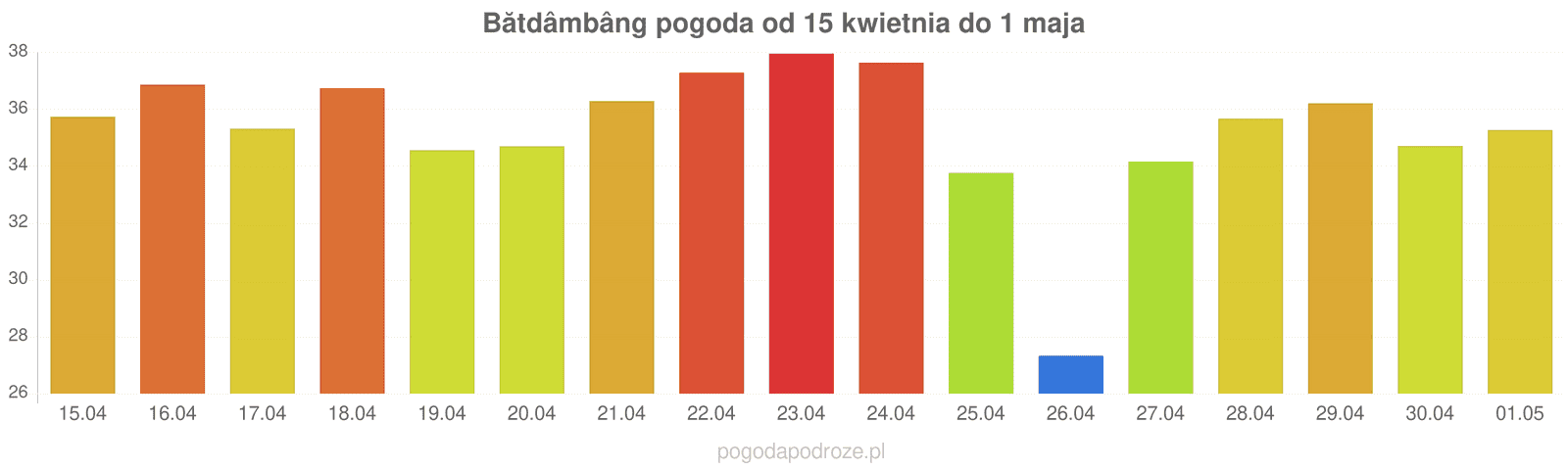 Jeśli wierzyć prognozom z odstępem czasu 7 dni to czeka nas dużo ciepła w Bătdâmbâng w przyszłym tygodniu. Temperatura w ciągu dnia osiągnie 38 stopni.
