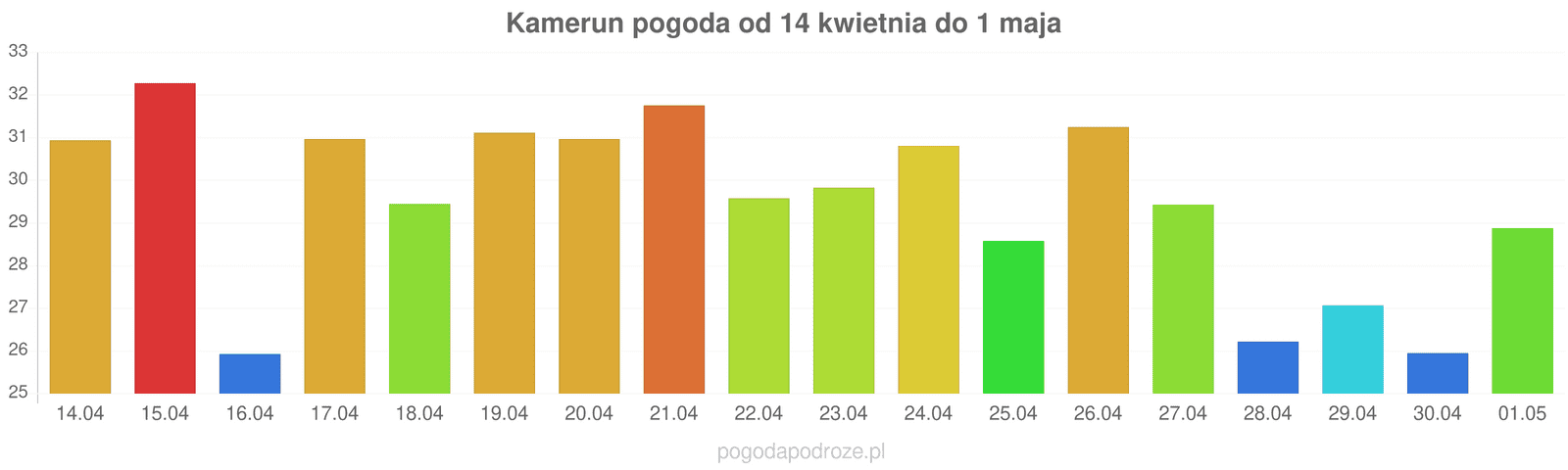 Z kolei jutro będzie jeszcze cieplej niż dziś w Kamerunie. Termometry pokażą w ciągu dnia 31 stopni.
