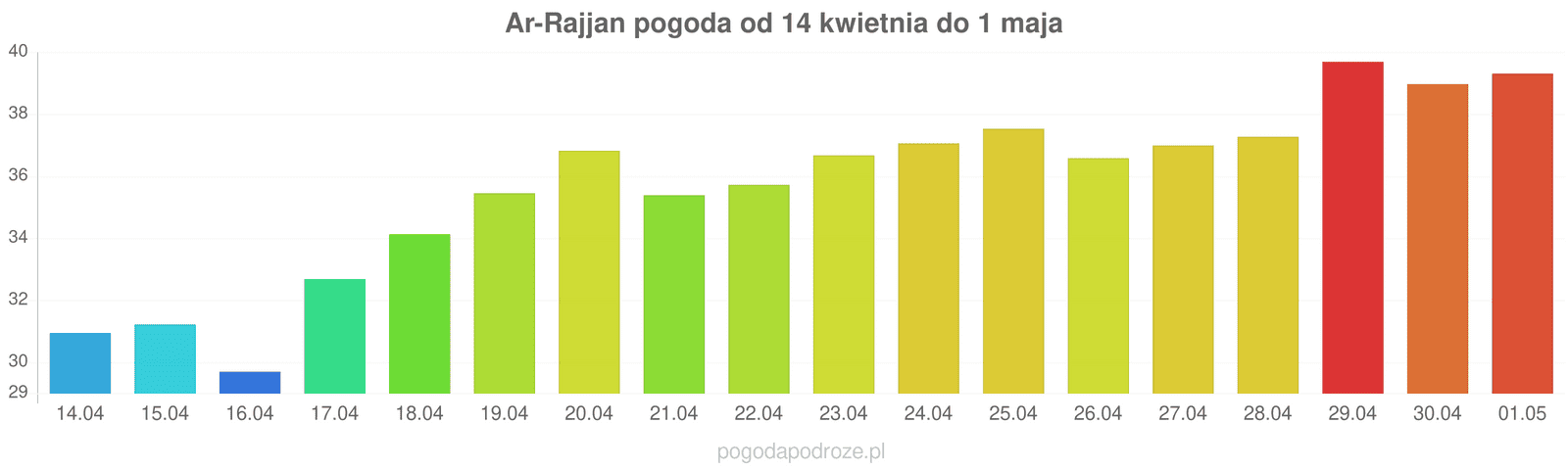 Jeśli wierzyć prognozom z odstępem czasu 7 dni to czeka nas dużo ciepła w Ar-Rajjan w przyszłym tygodniu. Temperatura w ciągu dnia osiągnie 37 stopni.