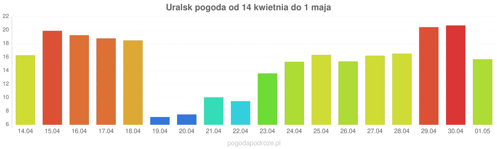 Według prognozy długoterminowej za tydzień w Uralsk temperatura będzie spadać, w ciągu dnia można będzie obserwować temperatury około 14 stopni.