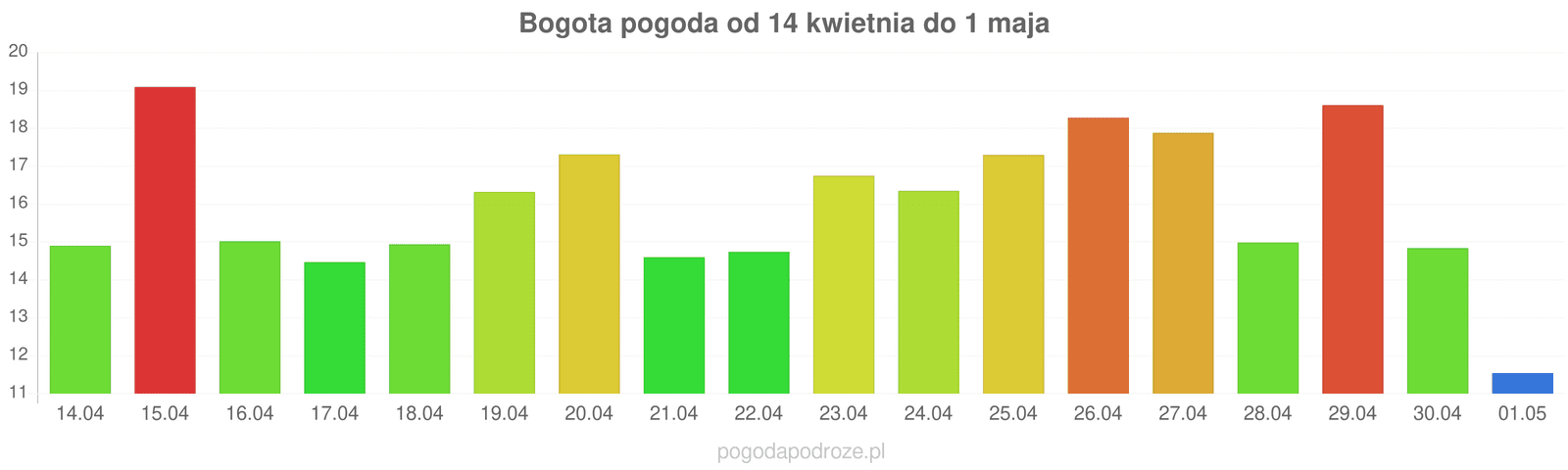 Według prognozy długoterminowej za tydzień w Bogocie temperatura wzrośnie i będzie trochę cieplej, w ciągu dnia termometry bedą notowały około 17 stopni.