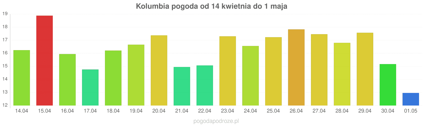 Natomiast jutro temperatura będzie niższa w Kolumbii i wyniesie w ciągu dnia około 15 stopni.