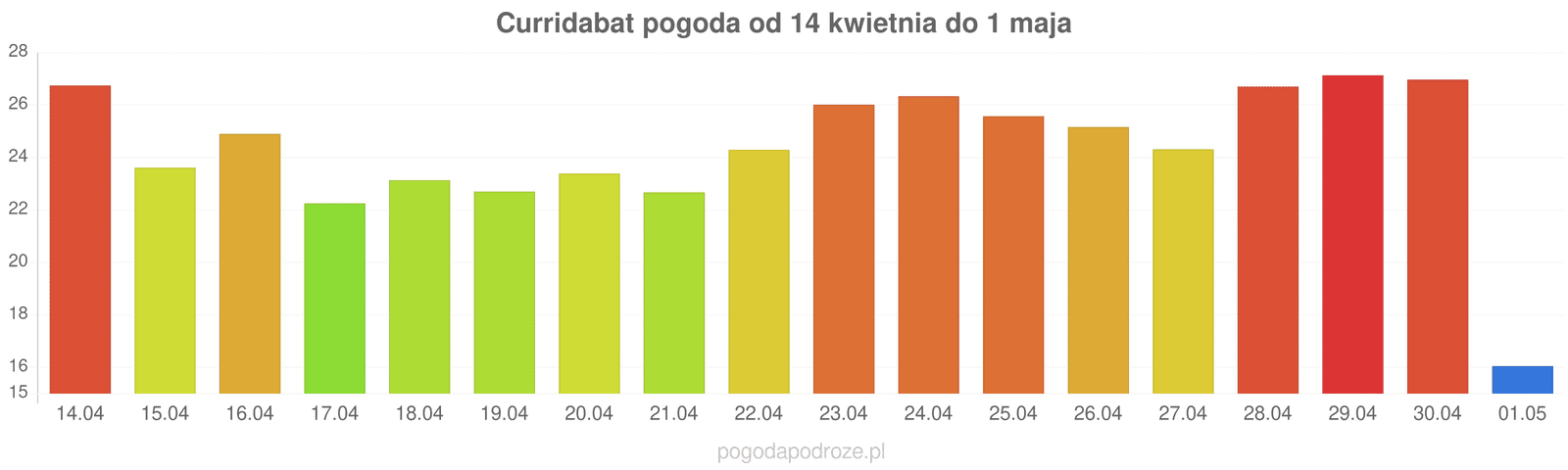 Według prognozy długoterminowej za tydzień w Curridabat temperatura wzrośnie i będzie trochę cieplej, w ciągu dnia termometry bedą notowały około 26 stopni.