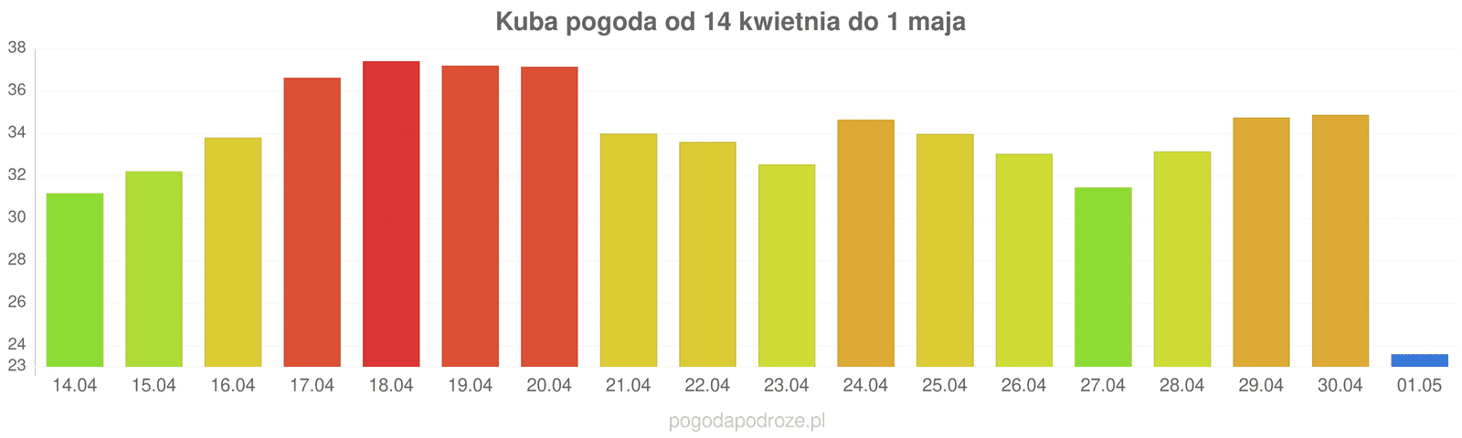 Z kolei jutro będzie jeszcze cieplej niż dziś na Kubie. Termometry pokażą w ciągu dnia 37 stopni.