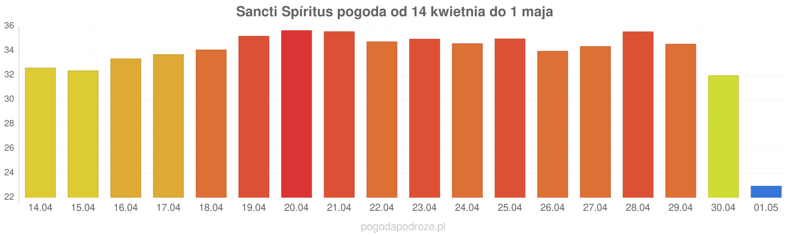 Jeśli wierzyć prognozom z odstępem czasu 7 dni to czeka nas dużo ciepła w Sancti Spíritus w przyszłym tygodniu. Temperatura w ciągu dnia osiągnie 35 stopni.