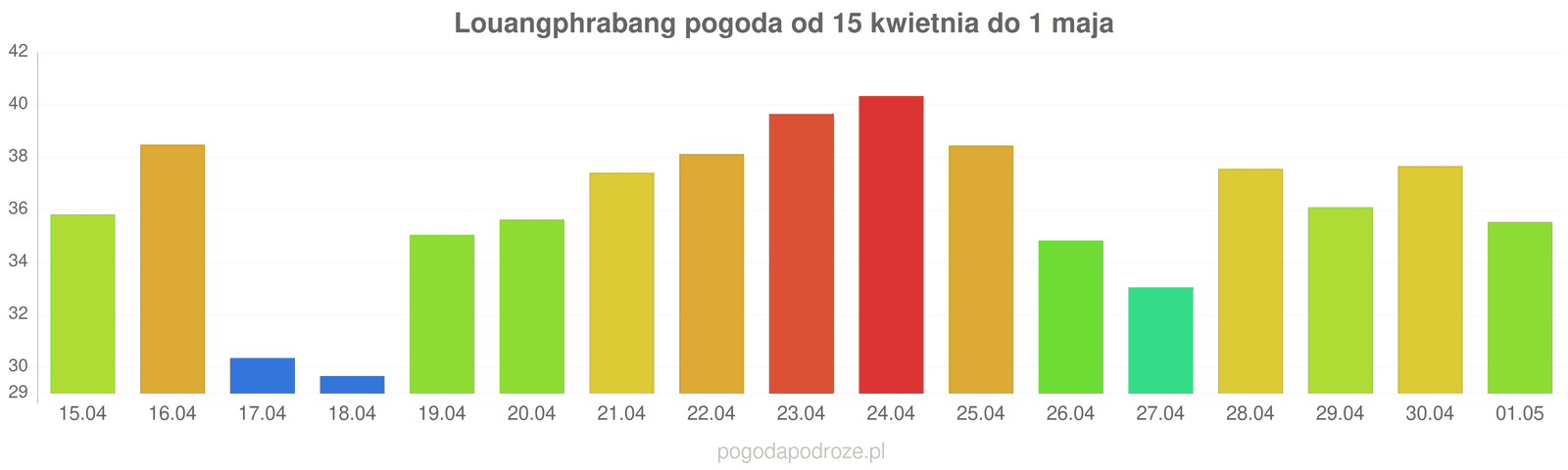 Jeśli wierzyć prognozom z odstępem czasu 7 dni to czeka nas dużo ciepła w Louangphrabang w przyszłym tygodniu. Temperatura w ciągu dnia osiągnie 40 stopni.