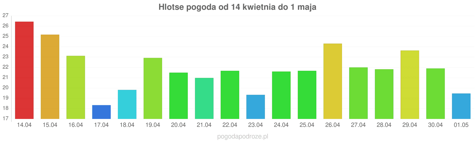 Według prognozy długoterminowej za tydzień w Hlotse temperatura będzie spadać, w ciągu dnia można będzie obserwować temperatury około 19 stopni.
