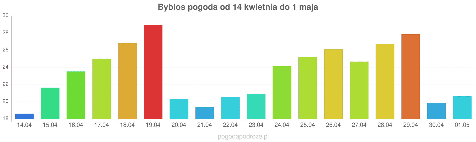 Według prognozy długoterminowej za tydzień w Byblos temperatura będzie spadać, w ciągu dnia można będzie obserwować temperatury około 21 stopni.