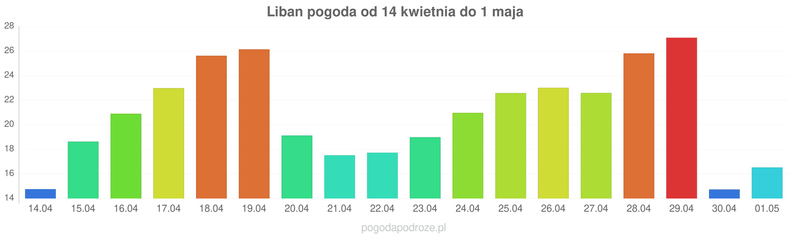 Według prognozy długoterminowej za tydzień w Libanie temperatura będzie spadać, w ciągu dnia można będzie obserwować temperatury około 19 stopni.