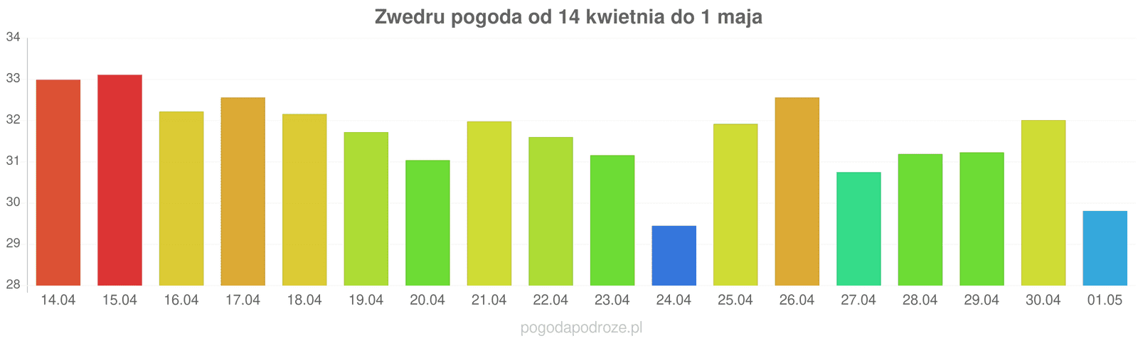 Z kolei jutro będzie jeszcze cieplej niż dziś w Zwedru. Termometry pokażą w ciągu dnia 33 stopnie.