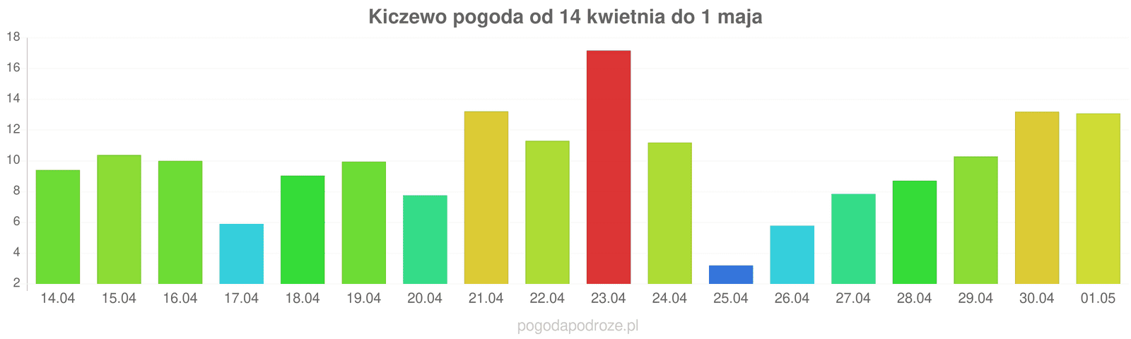 Na szczęście za tydzień będzie cieplej w Kiczewo :) Temperatura powinna wzrosnąć do 17 stopni.