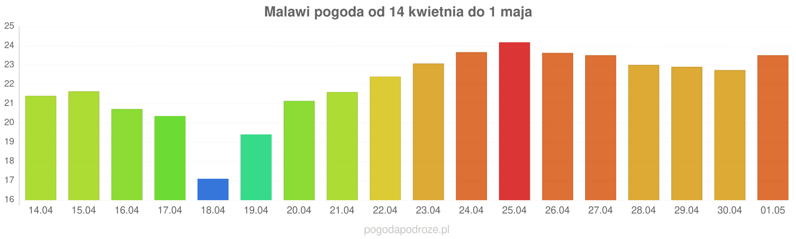 Według prognozy długoterminowej za tydzień w Malawi temperatura wzrośnie i będzie trochę cieplej, w ciągu dnia termometry bedą notowały około 23 stopnie.