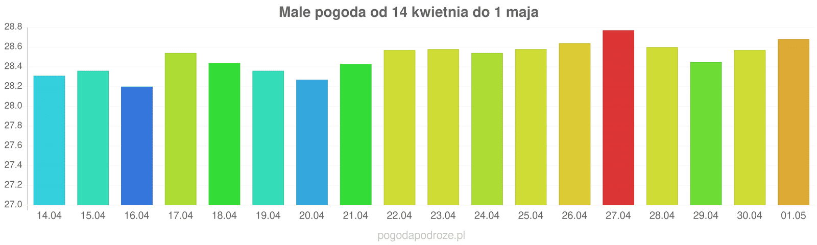 Jeśli wierzyć prognozom z odstępem czasu 7 dni to czeka nas dużo ciepła w Atol Male w przyszłym tygodniu. Temperatura w ciągu dnia osiągnie 29 stopni.