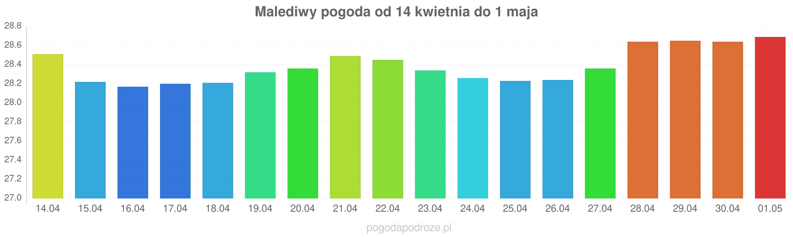 Z kolei jutro będzie jeszcze cieplej niż dziś na Malediwach. Termometry pokażą w ciągu dnia 28 stopni.