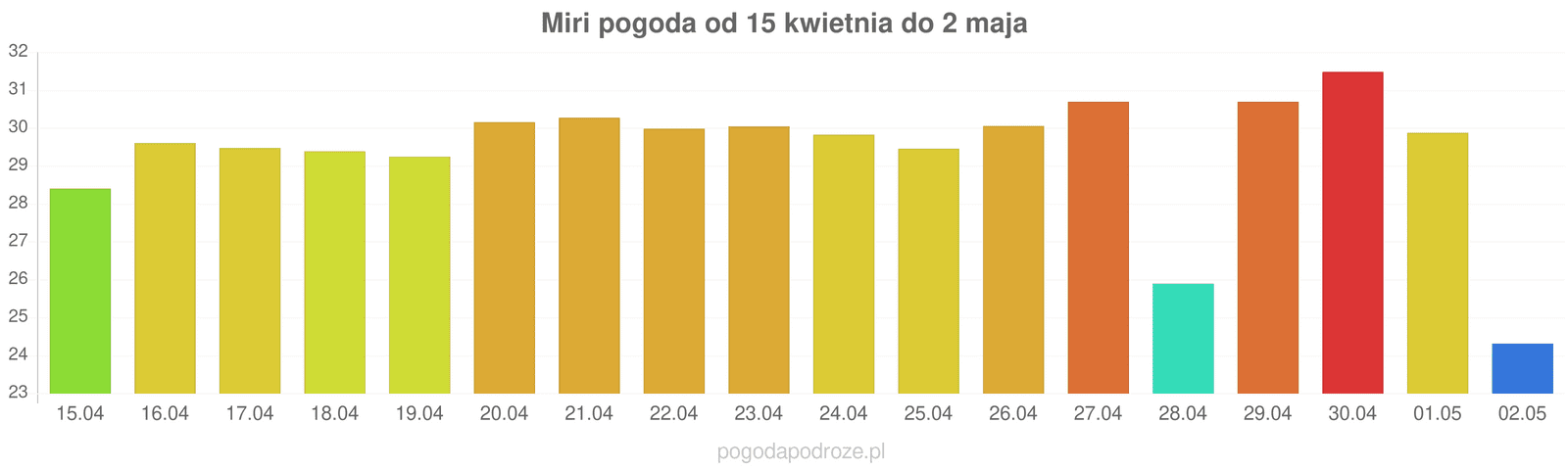 W przypadku dnia jutrzejszego można mówić o spadku temperatury w Miri. Słupek termometry spadnie i wyniesie w ciągu dnia 29 stopni.