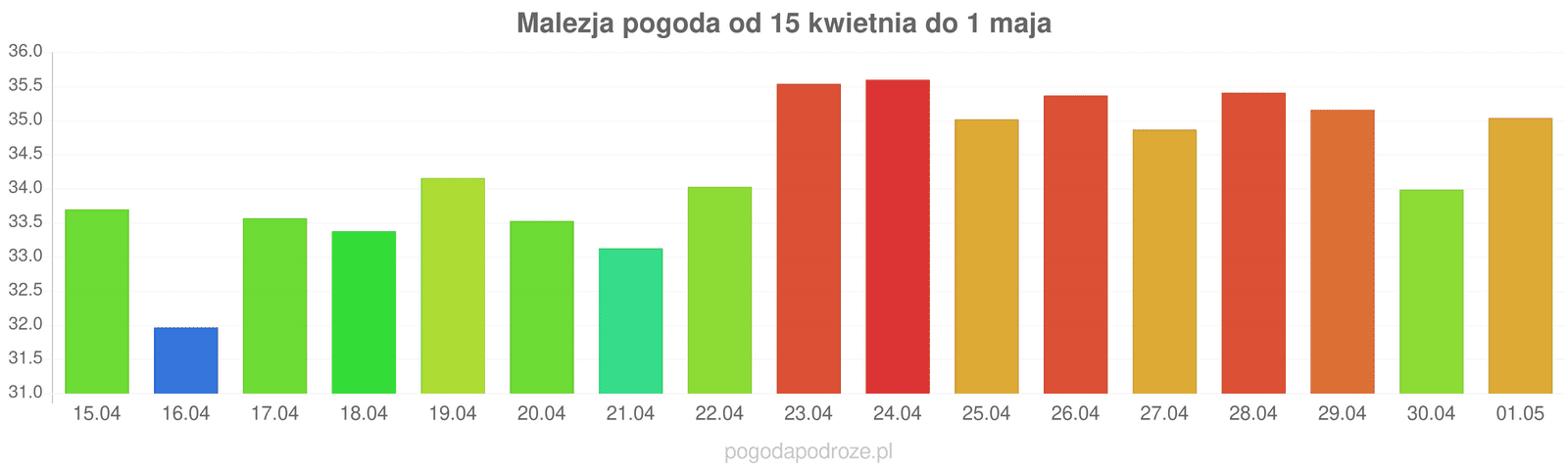 Z kolei jutro będzie jeszcze cieplej niż dziś w Malezji. Termometry pokażą w ciągu dnia 34 stopnie.