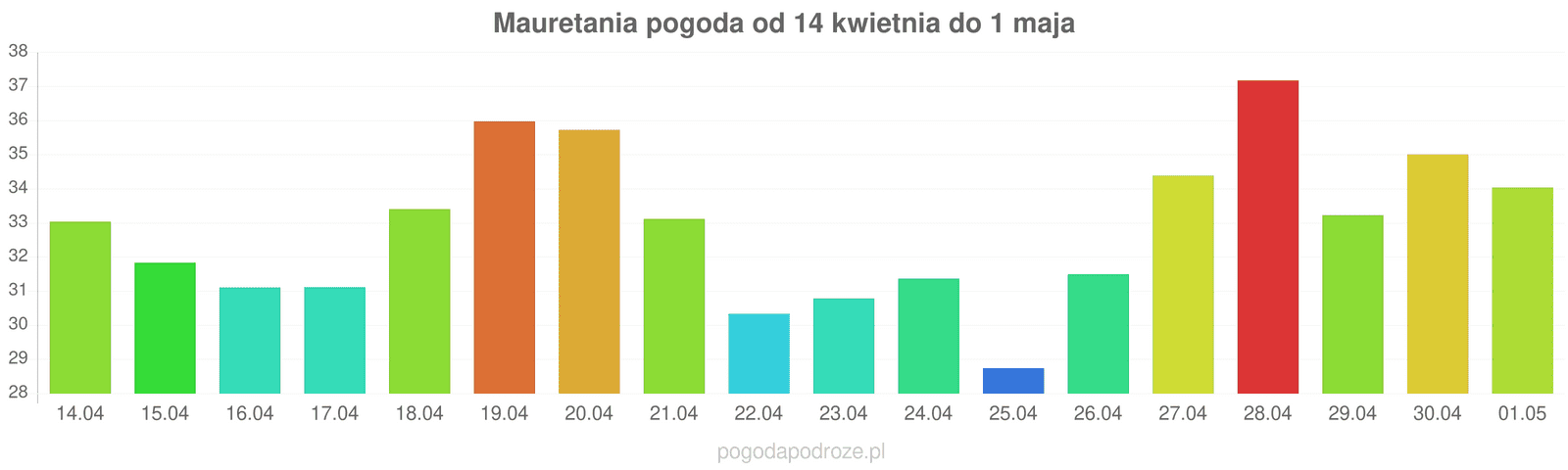 Z kolei jutro będzie jeszcze cieplej niż dziś w Mauretanii. Termometry pokażą w ciągu dnia 31 stopni.