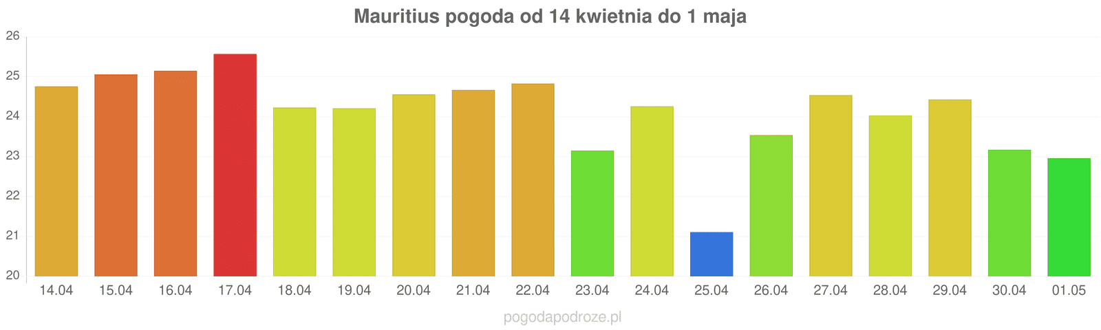 Z kolei jutro będzie jeszcze cieplej niż dziś na Mauritiusie. Termometry pokażą w ciągu dnia 26 stopni.