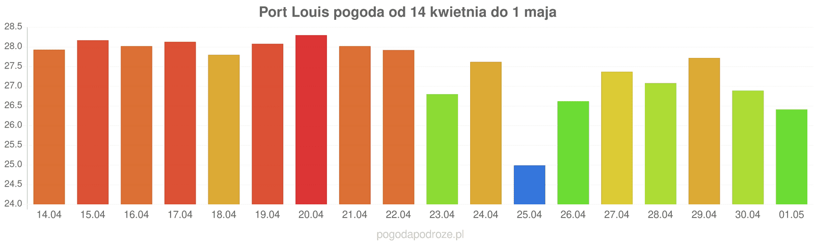 Z kolei jutro będzie jeszcze cieplej niż dziś w Port Louis. Termometry pokażą w ciągu dnia 28 stopni.