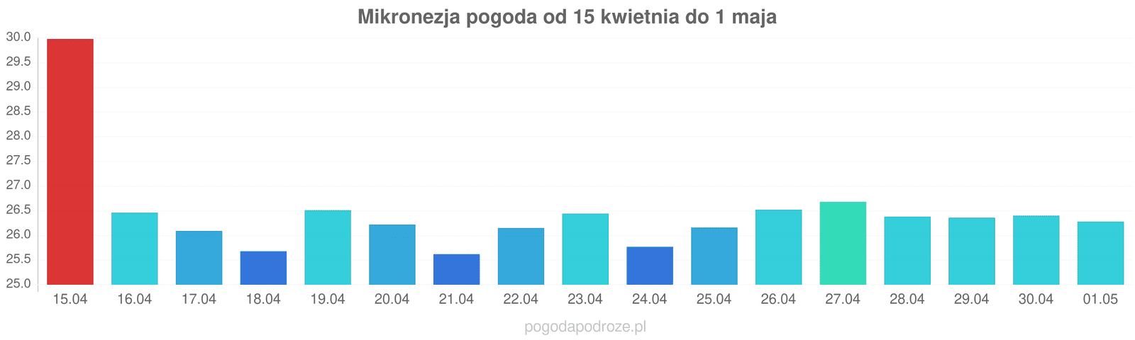 W przypadku dnia jutrzejszego można mówić o spadku temperatury w Mikronezji. Słupek termometry spadnie i wyniesie w ciągu dnia 26 stopni.