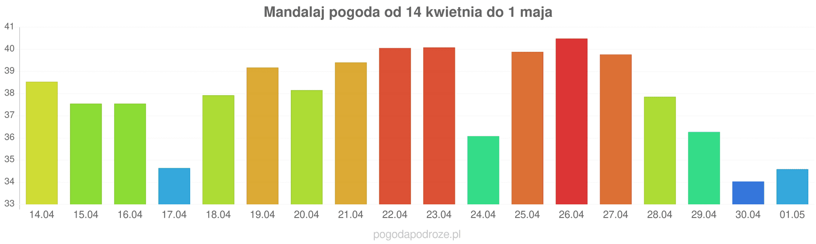 Jeśli wierzyć prognozom z odstępem czasu 7 dni to czeka nas dużo ciepła w Mandalay w przyszłym tygodniu. Temperatura w ciągu dnia osiągnie 40 stopni.