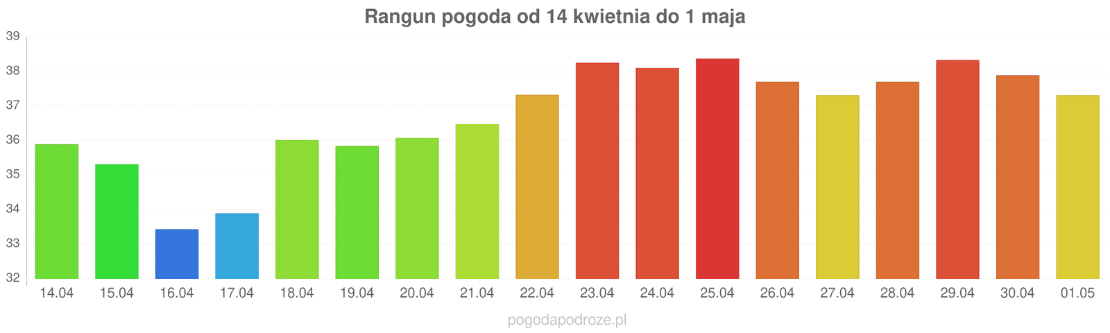 Jeśli wierzyć prognozom z odstępem czasu 7 dni to czeka nas dużo ciepła w Rangun w przyszłym tygodniu. Temperatura w ciągu dnia osiągnie 38 stopni.